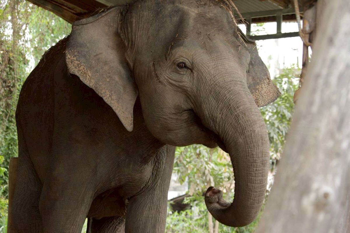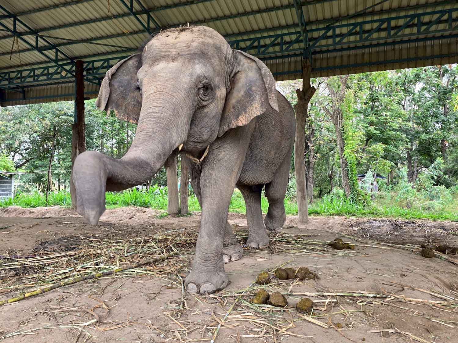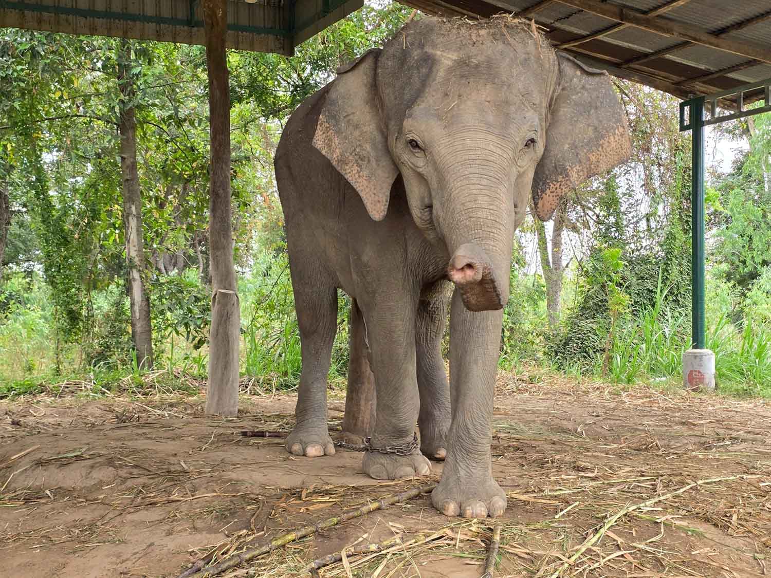 Nam Phueng is a 19-year-old female elephant. From the age of five, she was taken from place to place across Thailand, working as a street-begging elephant, then later being used in elephant riding in Ayutthaya before joining the Gentle Giants Elephant Stay Home Project. For more than a decade, her life was shaped by hard labor, confinement, and uncertainty.
