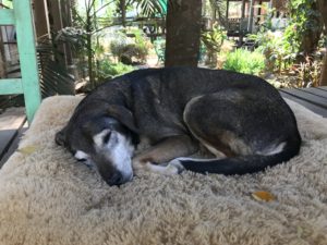 Not a lot of change with Ahn. Still happy in that corner of the platform. Still curling up for a nap, wherever, even if there are a group of volunteers in the way. Still the dog I most love to photograph. There are also a lot of new cozy beds on the platform, fall out from the many donations the puppy mill rescue brought on. All the dogs have been able to enjoy the beds.