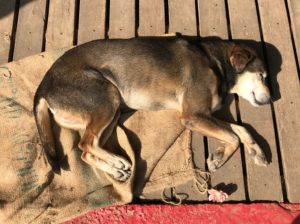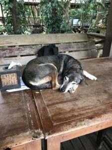 Ahn still doesn’t disappoint in his funny sleeping poses, either in a sunny spot of his northeast corner of the platform, or on a table completely unaware of the day visitors trying to eat lunch around him. His life doesn’t change much, he’s stayed out of the clinic, and I can always find him sleeping in the sun.
