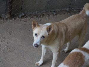 Angel is doing so so well recently, we are super proud of her. Of course she has always been a little bit timid and shy, but that has been a focus of ours recently to work more with the shy ones, and she now comes for walks consistently, and is coming to greet volunteers and staff that she is familiar with. She is still with the same pack in Open Run 4