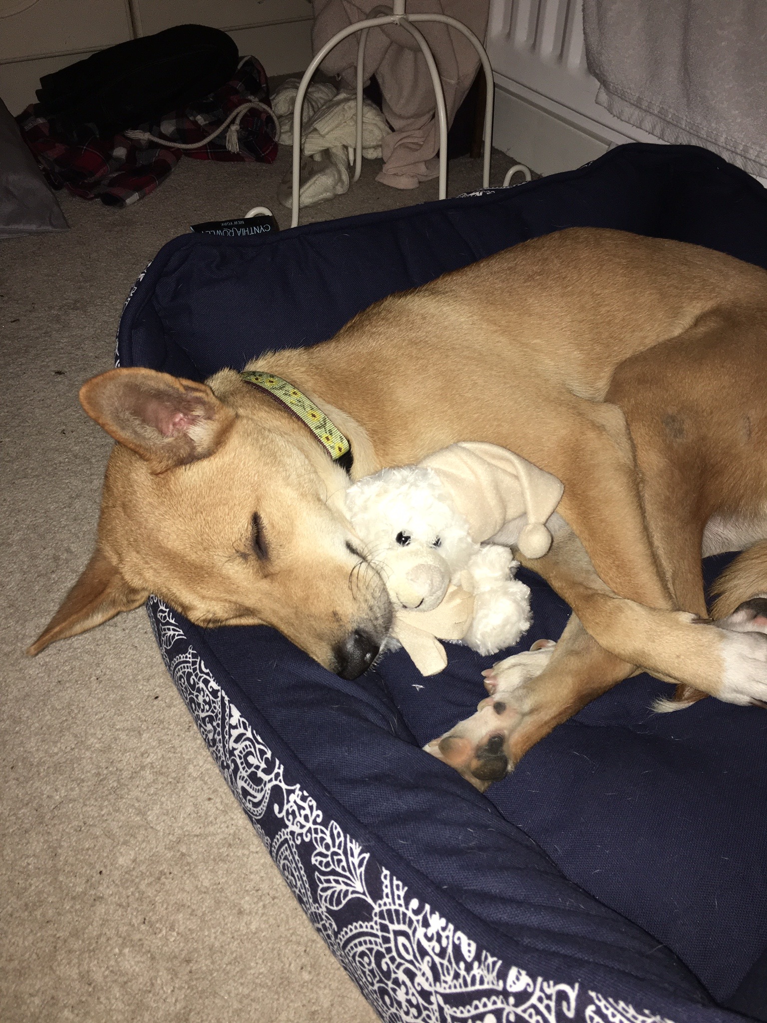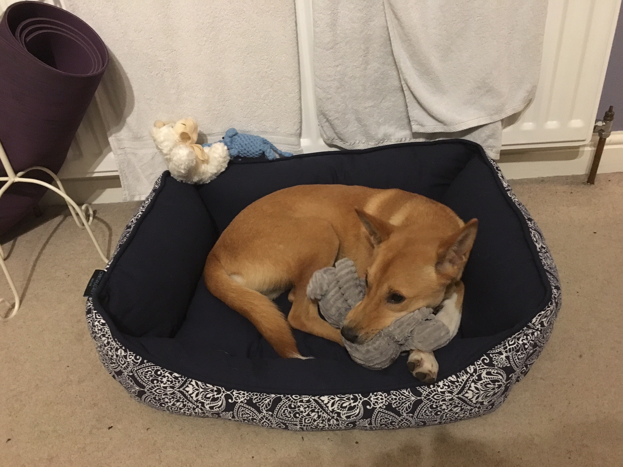 To Everyone at The Elephant Nature Park, First of all we want to say a huge thank you to Sabrina, our flight volunteer Ellie and everybody else over in Thailand who helped to bring our girl home! You all do such an incredible job and we will be forever grateful! Bailey is amazing! She is such a beautiful and smart dog and is already perfectly happy and relaxed in her new life! She surprises us everyday with how quickly she is learning and the amount of love she has to give! She still has some nervousness around other dogs, but with every walk she gets more and more bold and playful! With humans, she couldn’t be more friendly. She LOVES cuddles and kisses especially first thing in the morning. For the first few days after she arrived, she was our doggy alarm clock, waking us up bright and early by licking our faces!! The clever girl she is has now learned the sound of our real alarm, as soon as she hears it she bounds over for morning kisses and cuddles. Clicker training is going well! Just hours after picking her up from the airport she learned the sit command, and can now add “down" “stay" “leave" “off" "come here" and “fetch" to her list of tricks!! Fetch is her favourite game, especially in our big back garden. She spends a lot of time out there chasing squirrels and birds, she loves it!! She also loves chewing things… Most of her toys haven’t lasted very long… One of the pictures shows her with a toy she had been given just half an hour before the photo was taken!! Unfortunately she also like to chew the cushions from the sofa, and the bath mat… We can’t believe our luck with how easily she has settled. We won’t take any of the credit though. It was all Bailey, she truly is a special dog with a lot to give and we couldn’t be prouder owners!! Everyone at the park can be safe in the knowledge she is happy and so so loved!! Thank you for bringing us together! Lucy, Greig and Bailey