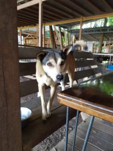 Bella is doing well on this raining season so far. When raining she usually lays sleep on her basket, if not Bella will walking around platform like her duty.