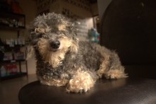 Everyone who followed us on Facebook lately knows that Boss got joined in the office by Scully, a paralyzed puppy that came to ENP a few months ago. She always desperately tries to play with him, but he is not too keen on her. Most of the time we divide the 2 of them by a door, so Boss doesn’t get too annoyed by her. Unfortunately his itchy skin is still itchy, we have him on a special “skin-friendly” diet by now, but also this doesn’t really seem to help him. We will keep trying different methods, hopefully eventually we can make it a bit easier for him. Apart from that he is still happily going on his walks with Sabrina and is playful, that is, only when he’s not too sleepy 😉