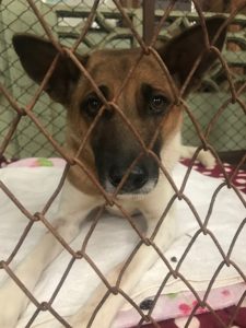 Chachacha has been in the clinic for a while, but not for injury or illness, for socialization.  Chachacha, Bolero and Jive all came to ENP with a great fear of people. They are all together, and although Chachacha is the best of the 3 in terms of being comfortable with people, we will wait until they are all ready to be relocated, together, to a new run.