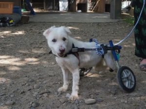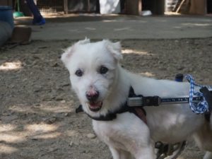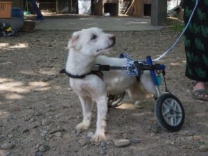 Diabla’s wound is getting better but she still needs to be in her crate during the day.