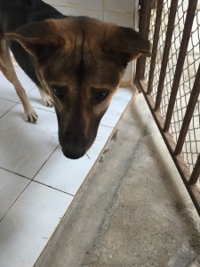 Khem Kang is still in open run 1, however having a small spot in clinic as he has some minor wounds on his leg. He will be back soon with the rest of his pack. He is a lovely boy who finds his way around perfectly considering his blindness and his three legs!