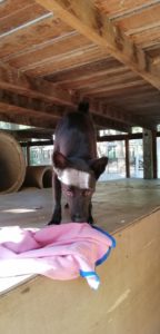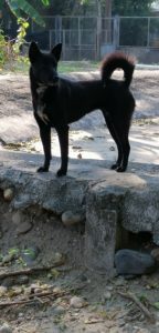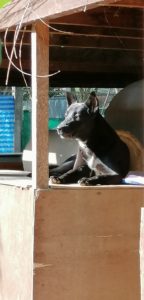 She used to shy. After she got wound from dog fight and brought to clinic and healed, she gained more trust to people. She will run around BR run4a when she see her friend.