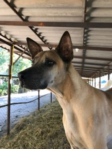 Loch’s buddy Sanchez has left to live with his new family. So, handsome Loch has a new buddy, Hippie.  I think the two make a nice pair! Loch has been wearing his jacket these days, since he’s a little on the skinny side, and the temperatures have been dropping.