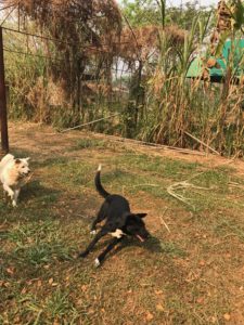 This dog needs a video, not a still shot. Mee Kwai is all about action, playing, annoying, chasing, never stopping. Clearly, healthy. Clearly, happy. He and Darcy have a great time together. Not saying he wouldn’t want, maybe, a couple of kids to run and play with? or a runner to train with? This dog would make a wonderful pet for a VERY active family.