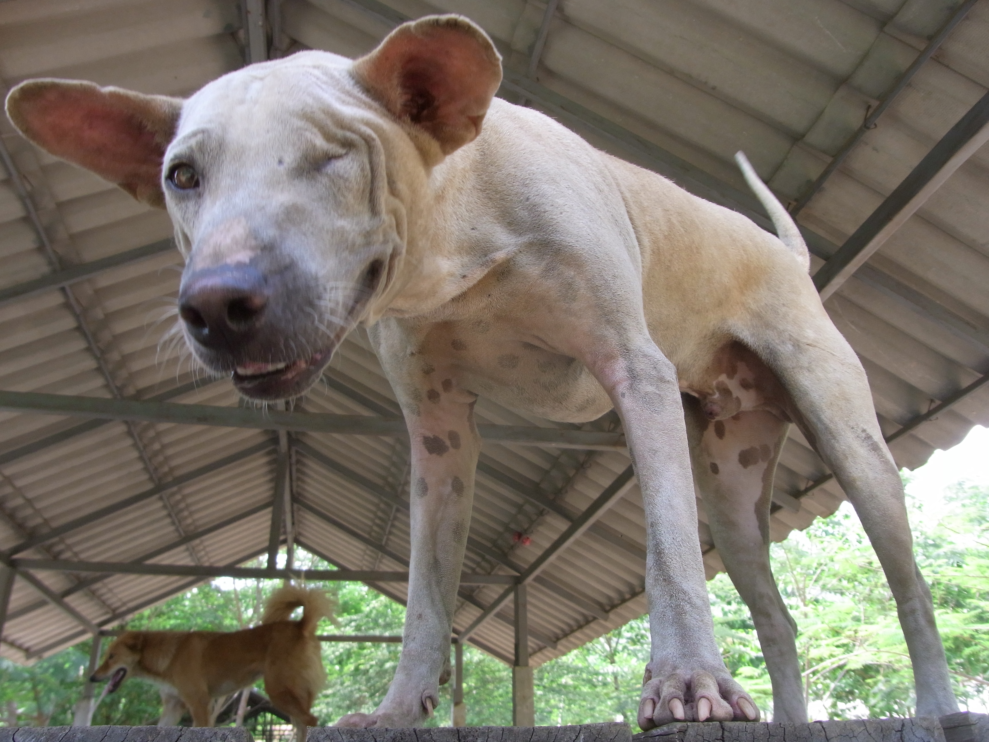 Moshe, the one eyed warrior, is enjoying his days lazing on the top deck of BR2 overlooking his kingdom of teenage puppies! He always has a spring in his step when someone calls his name for a cuddle and comes bounding down to see you! A lovely natured gentleman with a lot of love to give.