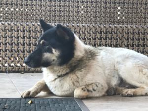 Oakley is staying healthy and happy.  Enjoying long, lazy days on the verandas of the Elephant volunteer houses.  Sometimes hanging out with Bella and Phantom at Sabrina’s.  Alan, who sometimes hangs out with this group, has gone off to live on a ranch in Texas.  That’s about the biggest change in Oakley’s live right now.