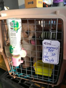 TODAY ZUMBA AND OLIVE LEFT THE PARK to soon start their new lifes with their new families! Zumba will be flying to Los Angeles and little Olive to Boston. We are very excited for both of them and can’t wait to hear updates! As always a thank you to Christine and James in Bangkok – without them our adoption program would not be possible and they always take such good care of the dogs in Bangkok. Also thanks to Jess who yet again had another very early morning start to accompany the dogs to the airport.