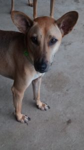 Prancer is one of our famous reindeer pups. Her and her siblings came to us in December 2015, they were born around October 2015. Their mum had gotten killed in a car accident, so the pups came to us at about 6 weeks of age. Prancer is very affectionate and active, always looking for pets and cuddles. She needs time to warm up to other dogs, but then is fine with most, she definitely prefers males though. She is very close to her sister Dancer, if someone has enough space maybe they could even find a home together.