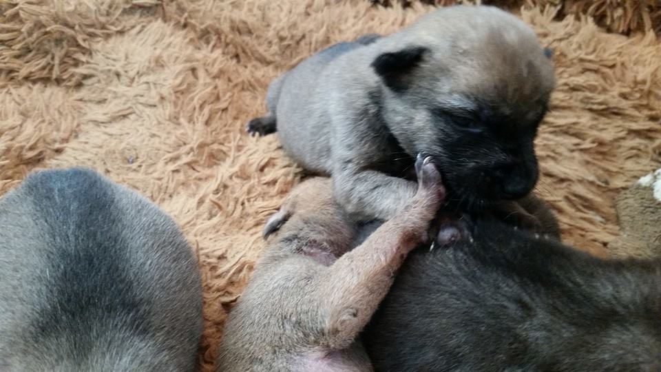 Since yesterday all the puppies have their little eyes open and are already starting to play with each other. And Mum is getting much better too – she was so scared in the beginning, but by now we even manage to walk her without having to carry her back. It’s the little joys here that make our days happy and successful!