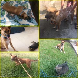 Shaggy’s confidence is building. He was a bit of a crybaby when he was at ENP and he still has a little whimper if he is unsure of anything. Shaggy has made friends with the 3 dogs that rule the street that we live on, which is amazing as for the first few weeks, they visited our garden gate to growl at him. They now come for walkies with us in the neighborhood and he gets a bit of doggy company. He gets a few compliments from the locals when we are out and our neighbor calls him ‘Suay Daeng’ which means ‘Beautiful Red’. We visit a big park twice a week and we have a really long walk and a splash around in the lake and he loves it. Shaggy’s favorite place in the house is the bed, he quite happily takes himself upstairs when he fancies a little snooze and cuddles up with his favorite cat toy. I guess being allowed on the bed is a real novelty for him as the rooms/beds were out of bounds at the volunteer house at ENP (that didn’t stop him trying to break in to get a few seconds on a bed before being evicted though!) He can now lounge around on the bed to his hearts content and that’s exactly what he is doing! It’s not so easy having a dog in Bangkok, lots of soi dogs mean territorial issues and many parks don’t allow dogs, but I have found some parks, doggy cafes and groups we can join, including an obedience and agility class. One step at a time for this amazing boy, there’s no rush as we have the rest of our lives together, we are so happy to have him here with us. Thanks to the amazing staff and volunteers at ENP for all that you do, thanks for rescuing Shaggy, along with his siblings and Mum and for taking such good care of them all.
