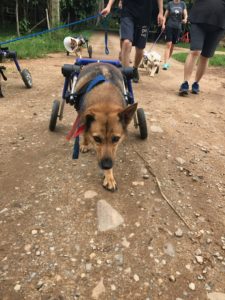 The Steel Run dogs are great! Their ever expanding pack has a bit more space, and a wonderful routine. Steel leads the pack on their daily walks, the only dog to go off leash.  Actually, she is usually a bit behind, taking her time, usually needing a bit of coaxing to keep up. She loves to stay behind, take a few detours, sniff everything, giving the new volunteers a little bit of a hard time, then when we round the corner to go back, she starts to run!  Check out the video of the original pack, Steel, Scully and Bao Bao, still walking together.