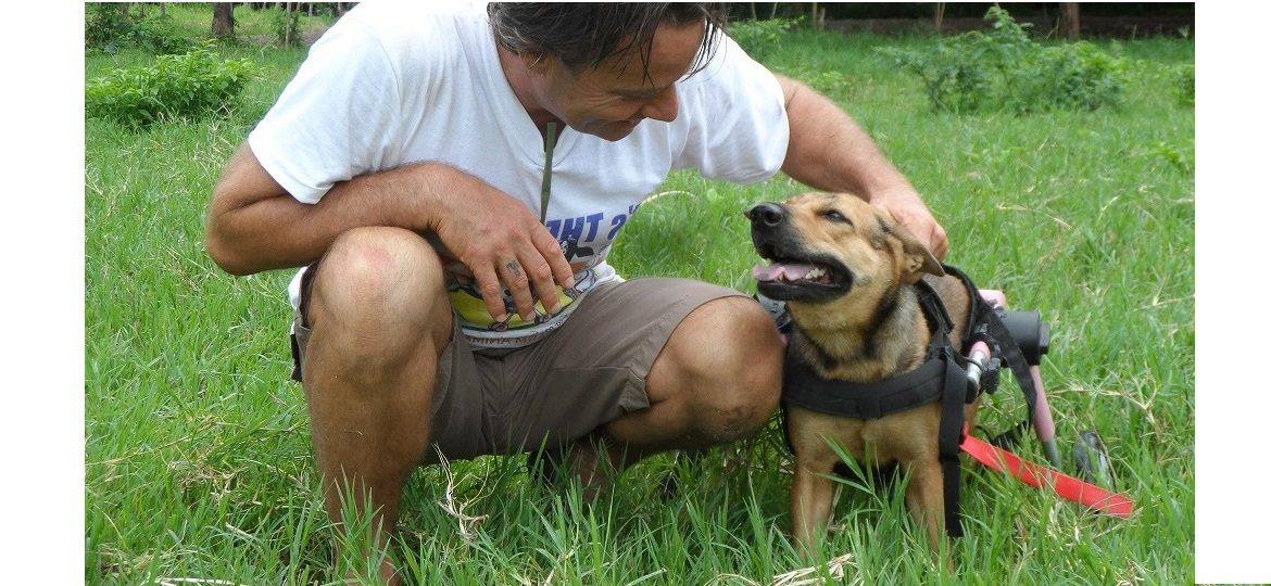 This is Suns first update! Sun came to the park in April 2012 after being rescued from the dog meat trade. Now Sun lives in one of our new runs with five other dogs, all female. He doesn’t seem to mind being the only boy and is a very happy dog.