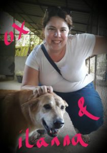 Lianne with Rain, a village dog