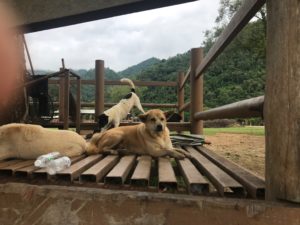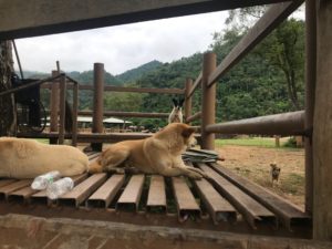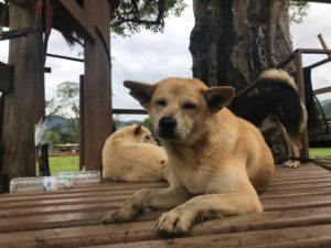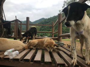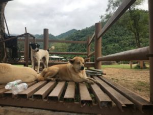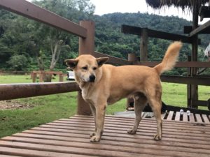 The elusive Yim . . . to make up for last update’s error, I have plenty of pictures of Yim! He has been very hard to find lately, possibly because of all the rain, but I finally found him hanging out with the “popular” crowd of free roamers, Rascal, Bolitas, Bami, the pack that hangs with the most popular elephant family. This means lots of treats from the mahouts, and lots of attention from the day visitors. So, Yim Sponsor, I’ve got extra pics of Yim. On another note, he’s healthy and getting along with this pretty large pack, enjoying the sunshine on the platforms in the field, lifting his head from a nap only to the sound of a plastic bag with treats.