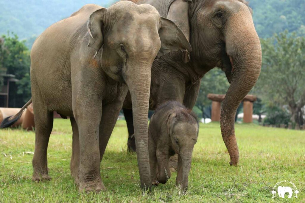 Now free from exploitation, Bunma’s playful spirit has emerged, and she often joins in the fun with the same enthusiasm as her daughter. Despite her youthful energy, she remains a devoted and protective mother to Chaba, who is growing into a sweet young elephant.