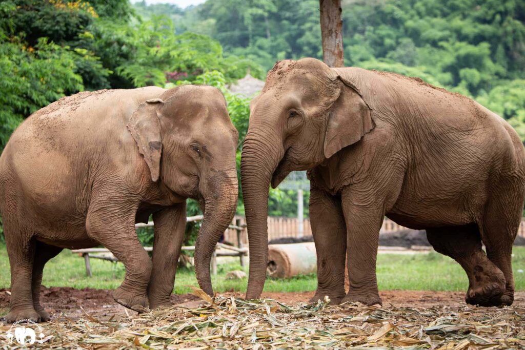 In July 2018 we rescued Kanjana from Pai, northern Thailand to Save Elephant Foundation. Upon arrival she was introduced to another elephant who had been rescued a few weeks before, named Fah Mui. They immediately formed an unexpected deep bond and began sharing a night enclosure together. It seems likely that Fah Mui became the mother who Kanjana never had.