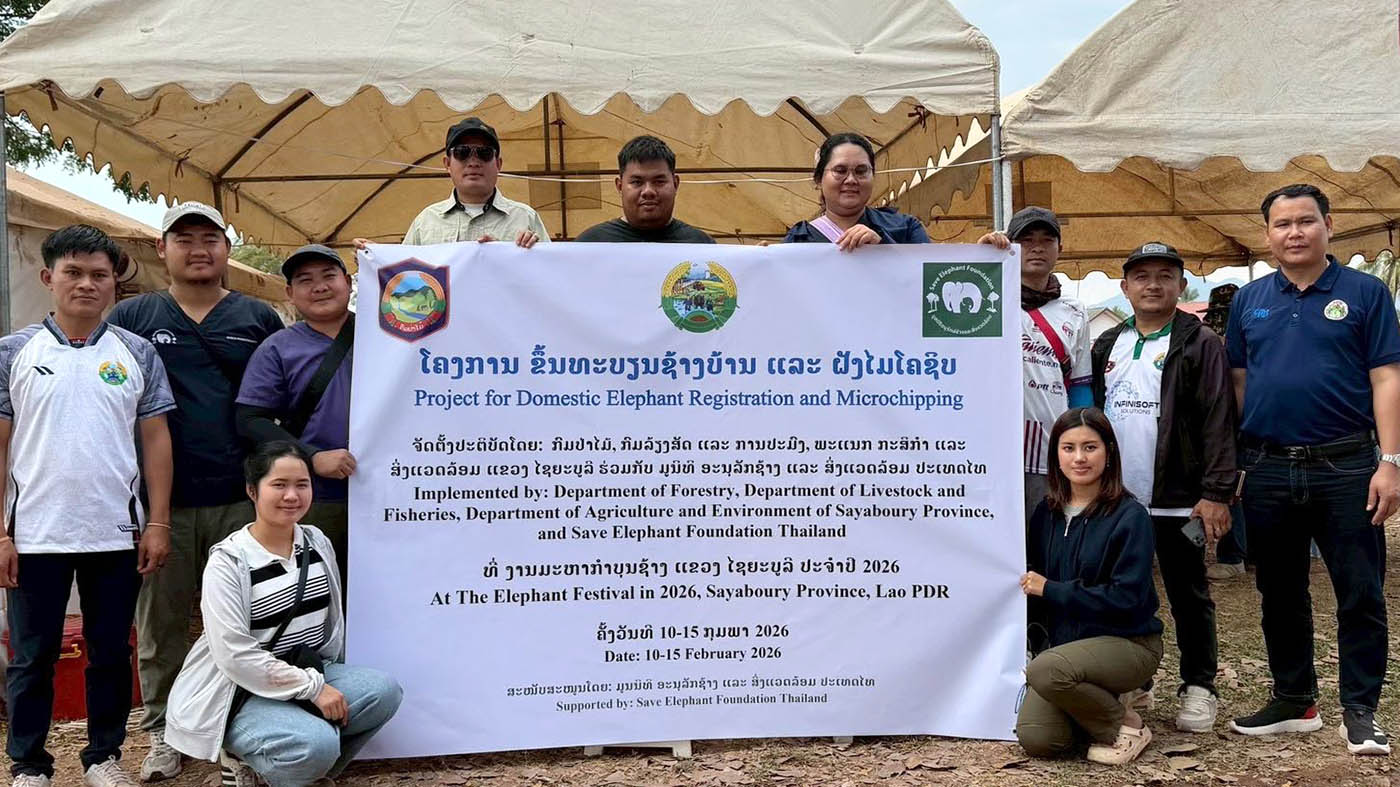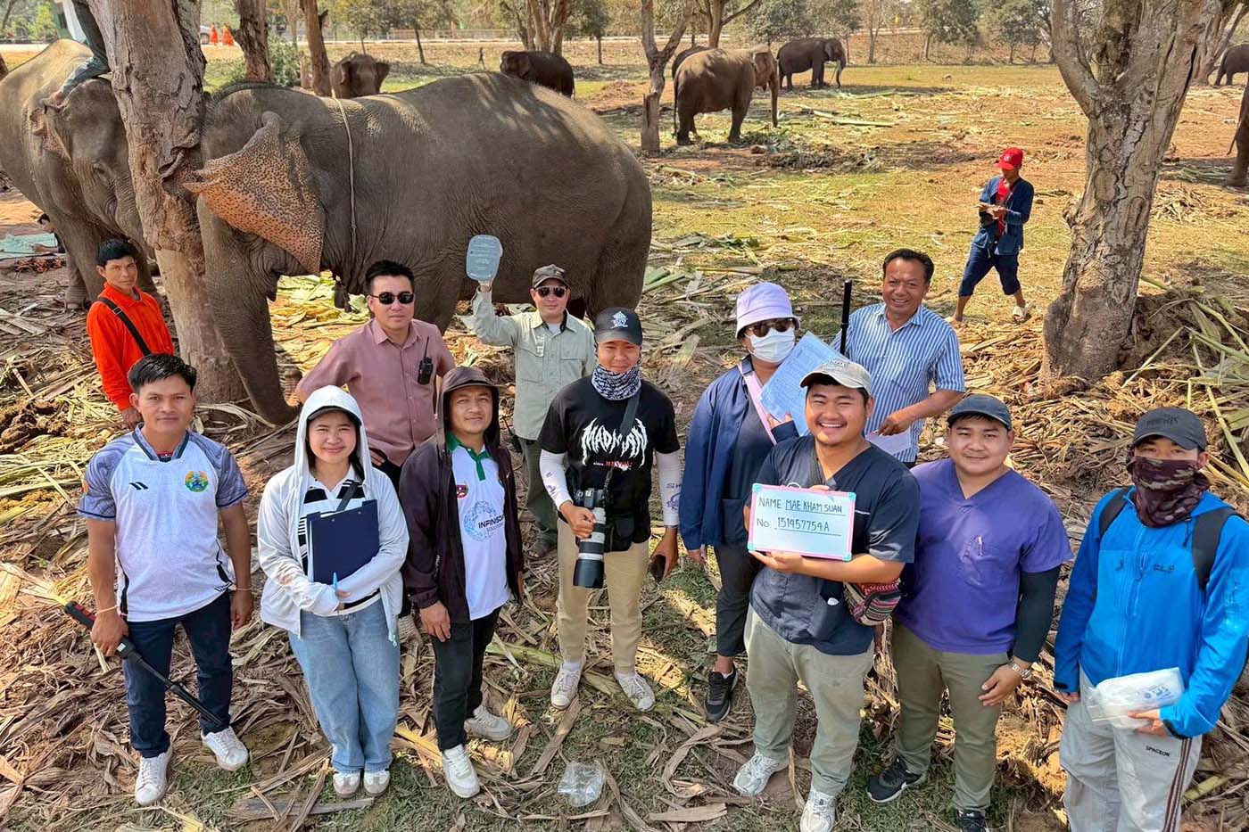 Witnesses to the ceremony included Ms. Suchanya Saengsawang, Foundation Committee Member; Dr. Adul Saengthong, Chief Veterinarian of Save Elephant Foundation; Ms. Thipsuda Masit, Foundation staff member; Mr. Khamphon Bounthavy, Head of the Wildlife Management and CITES Division, Department of Forestry; Mr. Bounthavy Manivong, Deputy Head of the Wildlife Management and CITES Division; along with other officials from the Department of Forestry.