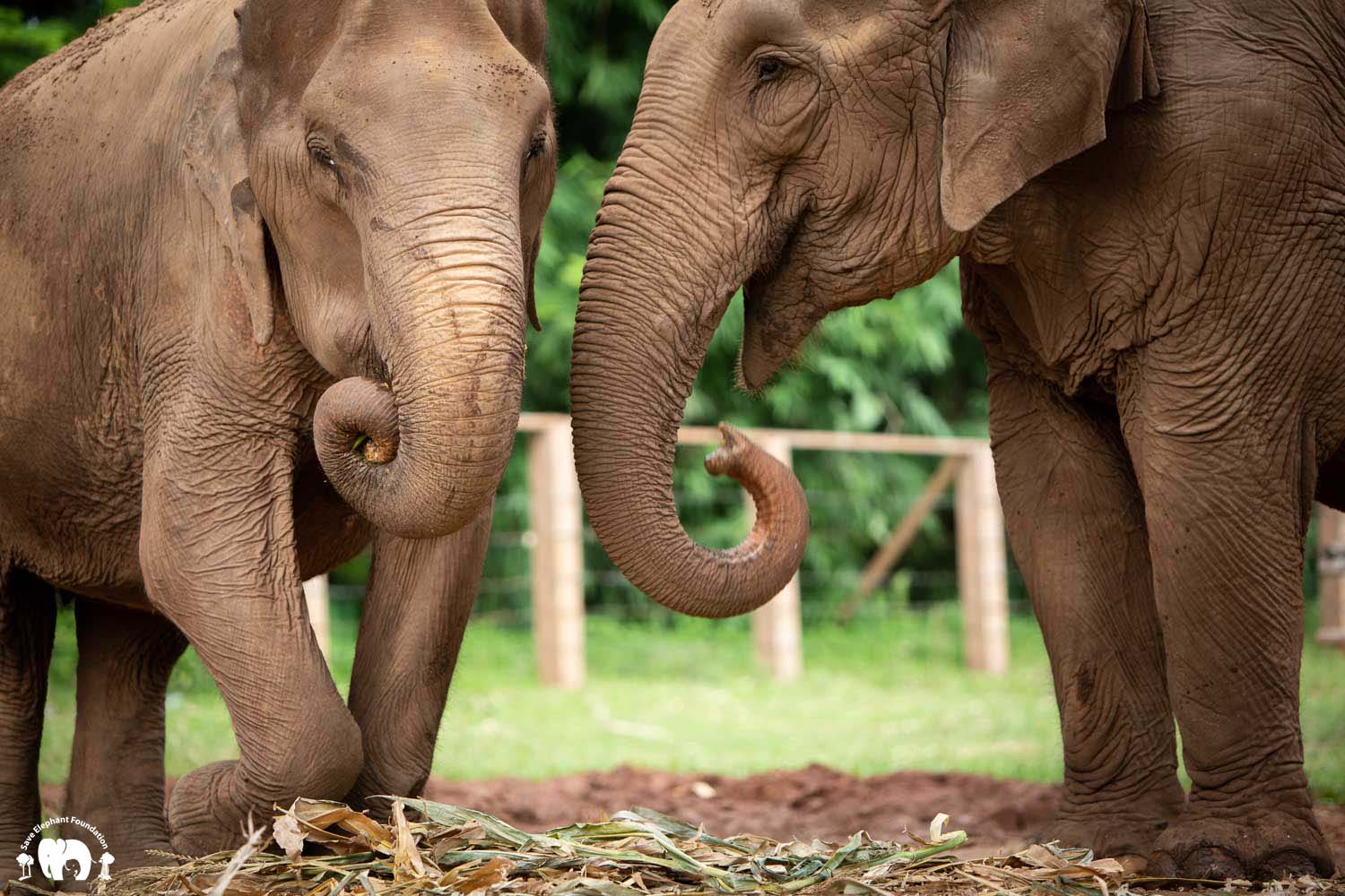 In July 2018 we rescued Kanjana from Pai, northern Thailand to Elephant Nature Park. Upon arrival she was introduced to another elephant who had been rescued a few weeks before, named Fah Mui. They immediately formed an unexpected deep bond and began sharing a night enclosure together. It seems likely that Fah Mui became the mother who Kanjana never had.